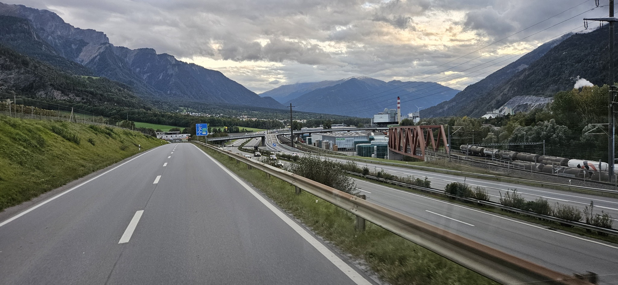 Виньетка, что в Австрии, что в Швейцарии означает, что под угрозой штрафа нельзя ехать по магистралям, а вот по мелким региональным дорожкам - можно. И на этой огромной махине по такой дороже чутка стремно