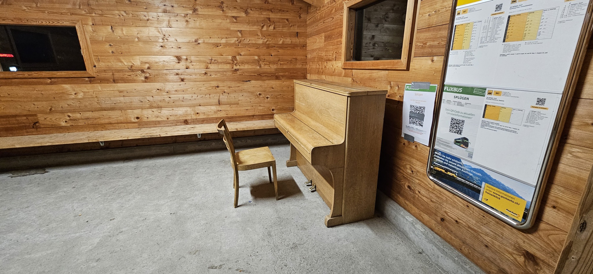 Третья попытка - на стоянке небольшого горнолыжного курорта Шлютген. Парковка заполнена на 20%. Я приткнул фургон и пошел смотреть как тут все. На фото - внутренности автобусной остановки. Но надпись "Кемпинг запрещен. Полиция проверяет в 22 часа" как-то мне не понравилась. Я же буду уже чуть под-шофе. И скорее всего не очень одетый. И как обьяснять, что "я устал, но если надо уеду"? Ерунда какая-то. Хотя стоянка была отличная, а вот приложению park4night я в Швейцарии больше не верю. Да и ну реально всюду знаки "Парковка запрещена".