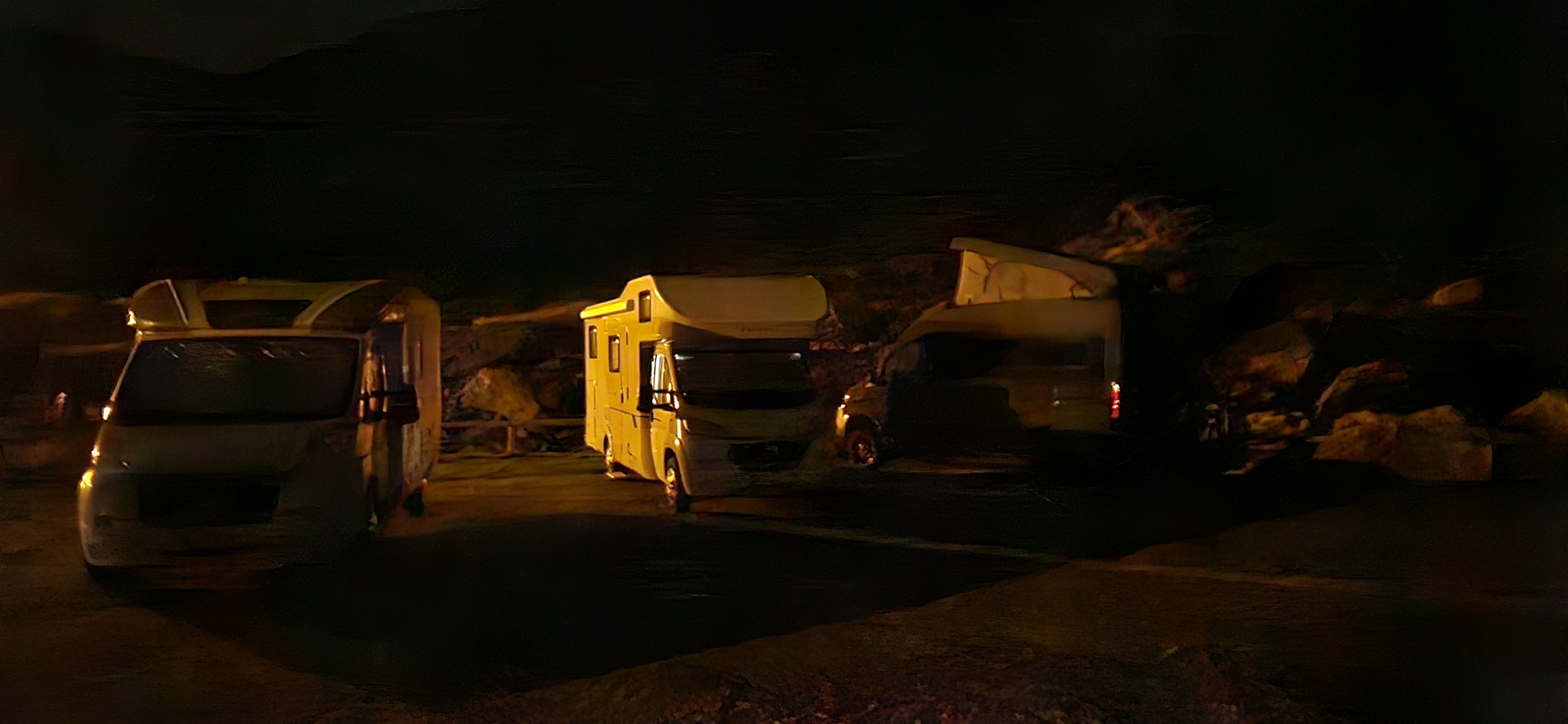 Вторая попытка остановиться на ночлег была в каком то дупле в неудобном месте, при этом задняя часть фургона нависала над горной речкой. Да и криво стоял и как раз более нагруженная часть ближе к откосу. Ну нафик.