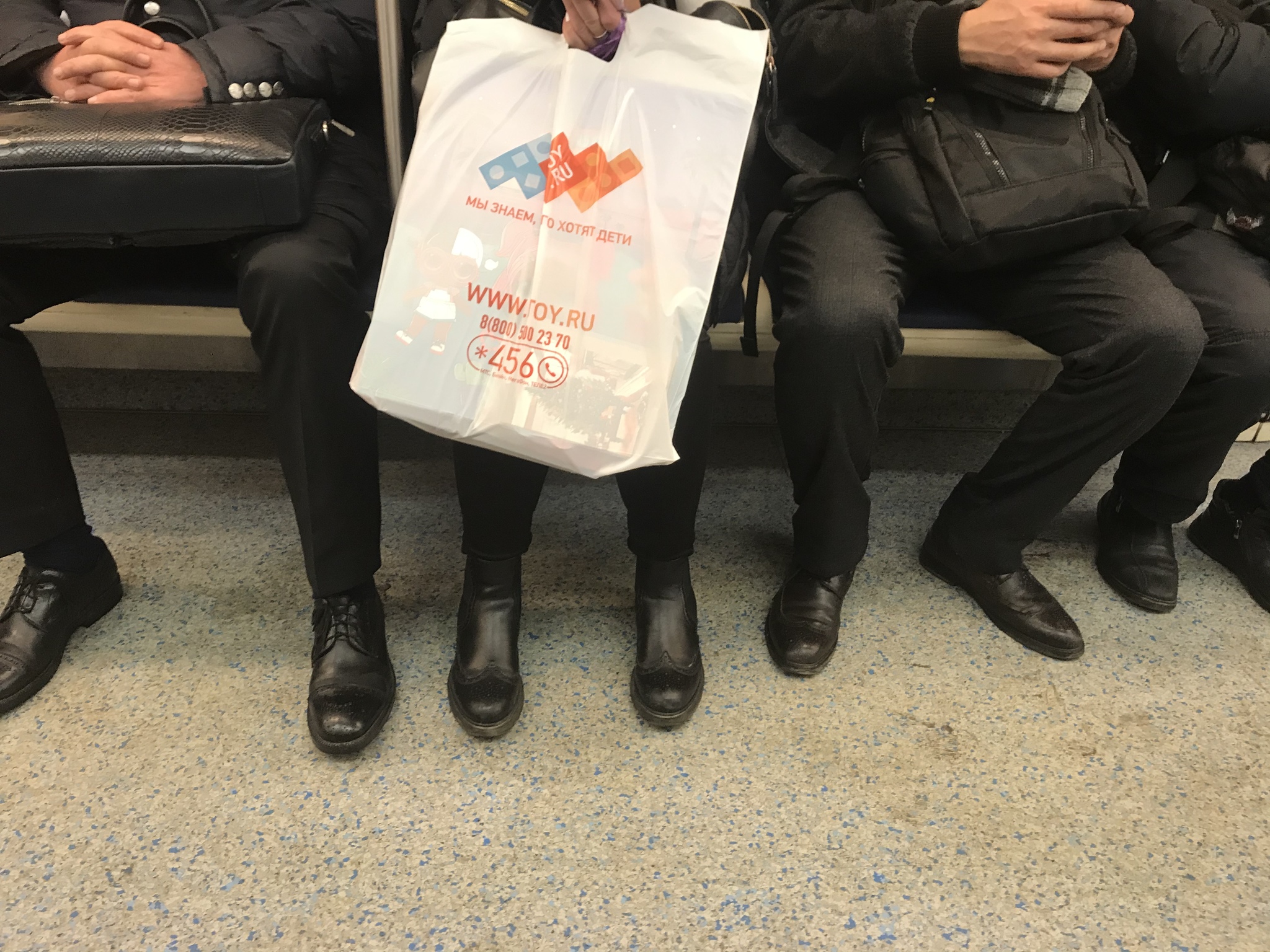 Еду с работы. В Метро, по крайней мере в моём вагоне, большинство - в черном. Маски... А глаза у всех грустные. Усталые. А скоро Новый год.! Символична надпись на пакете у пассажирки напротив. «Мы знаем, чего хотят дети!» Слоган сетевого магазина... Как-то сегодня по особому звучит...