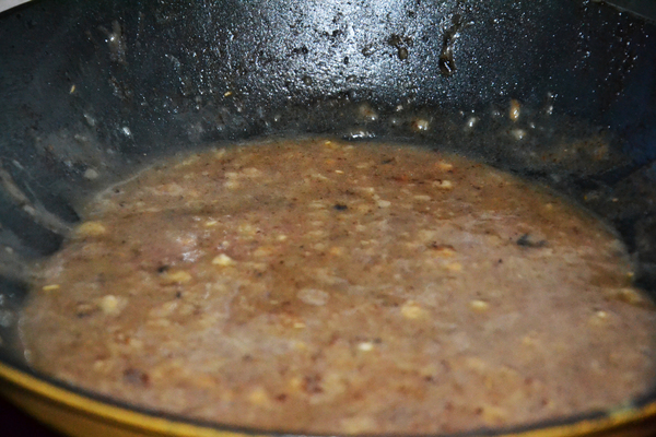 Котлеты откладываем в сторону, пришло время соуса. В сковородке осталась вся вреднота от котлет, шкварки, жир. Берем стакан воды (если есть бульон, то вообще супер), выливаем в сковородку и ставим на средний огонь, доводим до кипения.