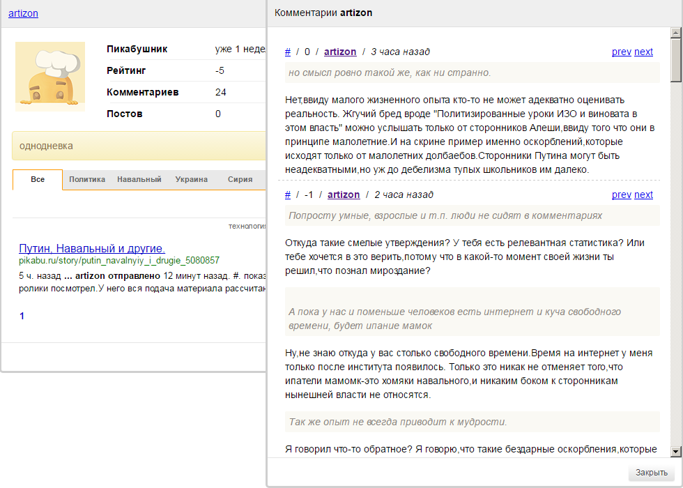 Но пост не об этом. Я смотрю его ролики и вижу что его поддерживает огромное количество молодежи. И это свойственно молодежи вообще - быть против чего то. При этом много энергии и мало жизненного опыта. Нужен какой то ориентир чтобы эту энергию приложить. И вот этим ориентиром для большого количества молодых людей стал Навальный. Дальше я читаю посты на таком популярном ресурсе как Пикабу и вижу что эти люди есть здесь, но с ними не получается наладить диалог. На мой взгляд это беда. На этом ресурсе есть много зрелых людей - почему мы не пытаемся как то конструктивно общаться с поклонниками Алексея? Неадекватные? А поклонники Путина во всем - адекватные?Есть несомненно плюсы у нынешнего президента, но что минусов мало?