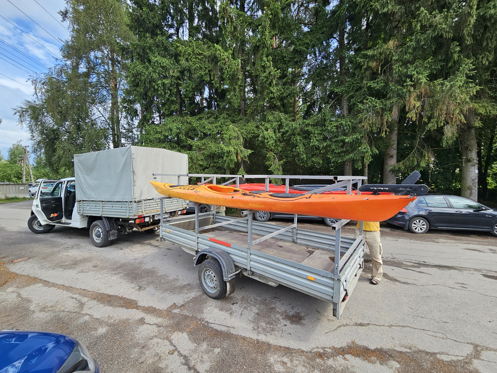 Откуда предполагался трансфер в Мельниково силами такси, с которым договорились за 3 недели. Но напомнили мы о себе за пару дней до, что, видимо, было поздновато, про нас благополучно забыли. Но был предложен выход, хоть и сильно дороже, но альтернативой был сильно более скучный маршрут туда-сюда. В итоге погрузили каяки только после трех дня: