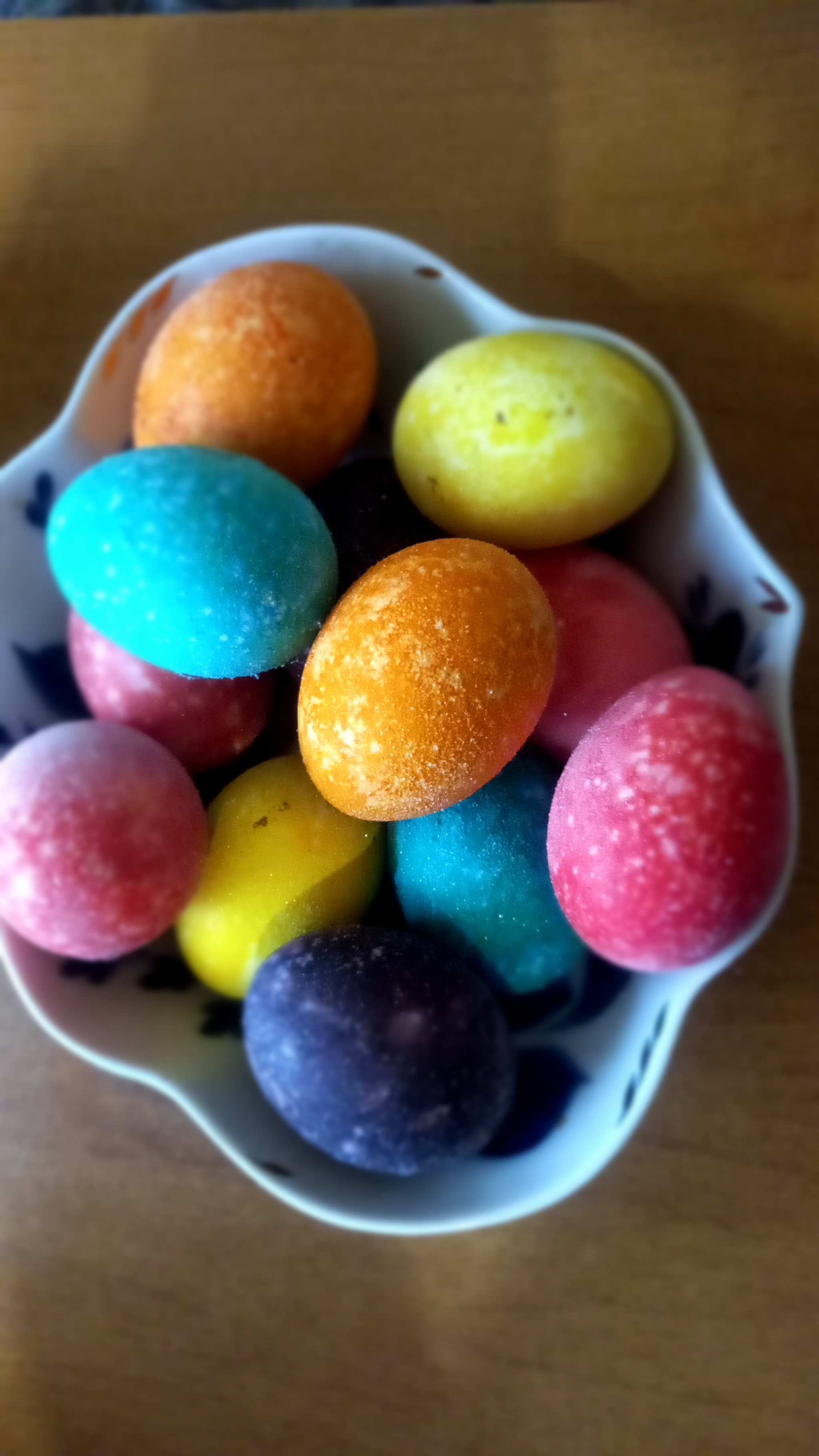 В этом году опять красила в белом вине уже в 5 цветов. И вот что из этого получилось :)