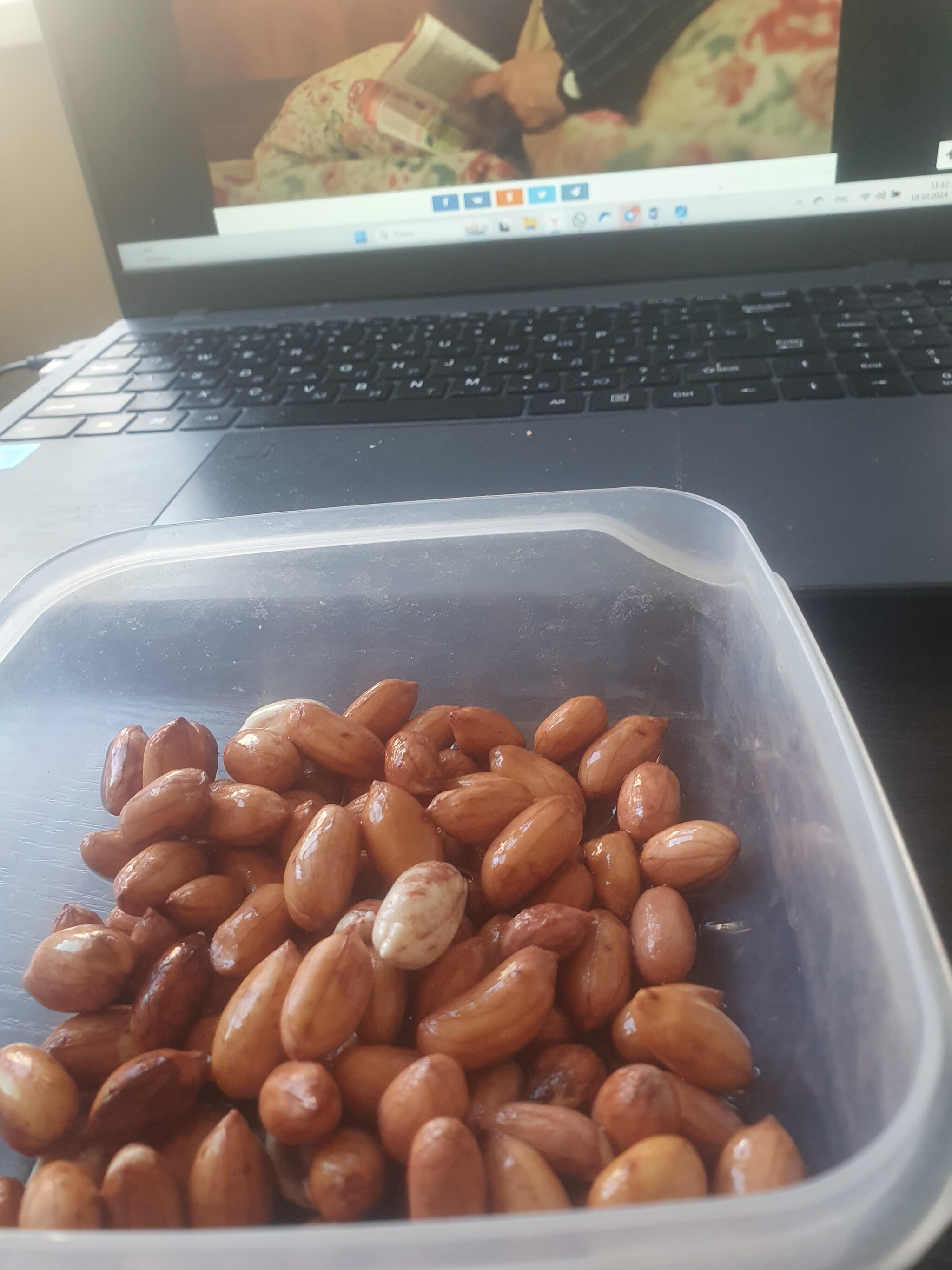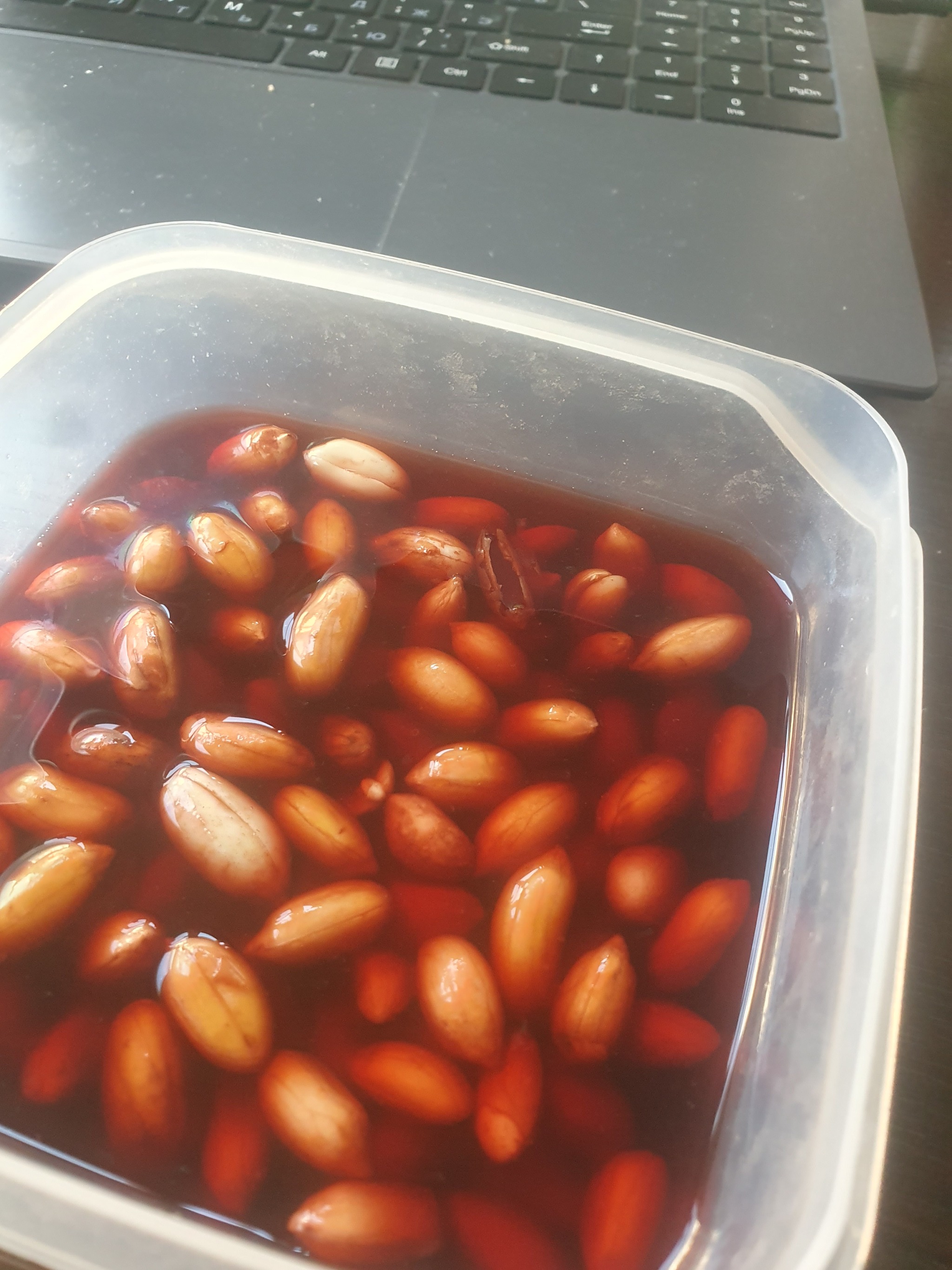 Заливаем арахис (покупайте крупный, узбекский, он ближе к светло-коричневому), дешевым вином. Вымачиваем. Даем высохнуть. Отличная закуска к любой алкогольной вечеринке. Подготовьтесь заранее. Замочить, в идеальном случае, на сутки, и дать постоять сутки (в контейнере, под крышкой, с небольшим доступом воздуха). Если вы планируете выпивать через 2 дня - отличная и оригинальная закуска.