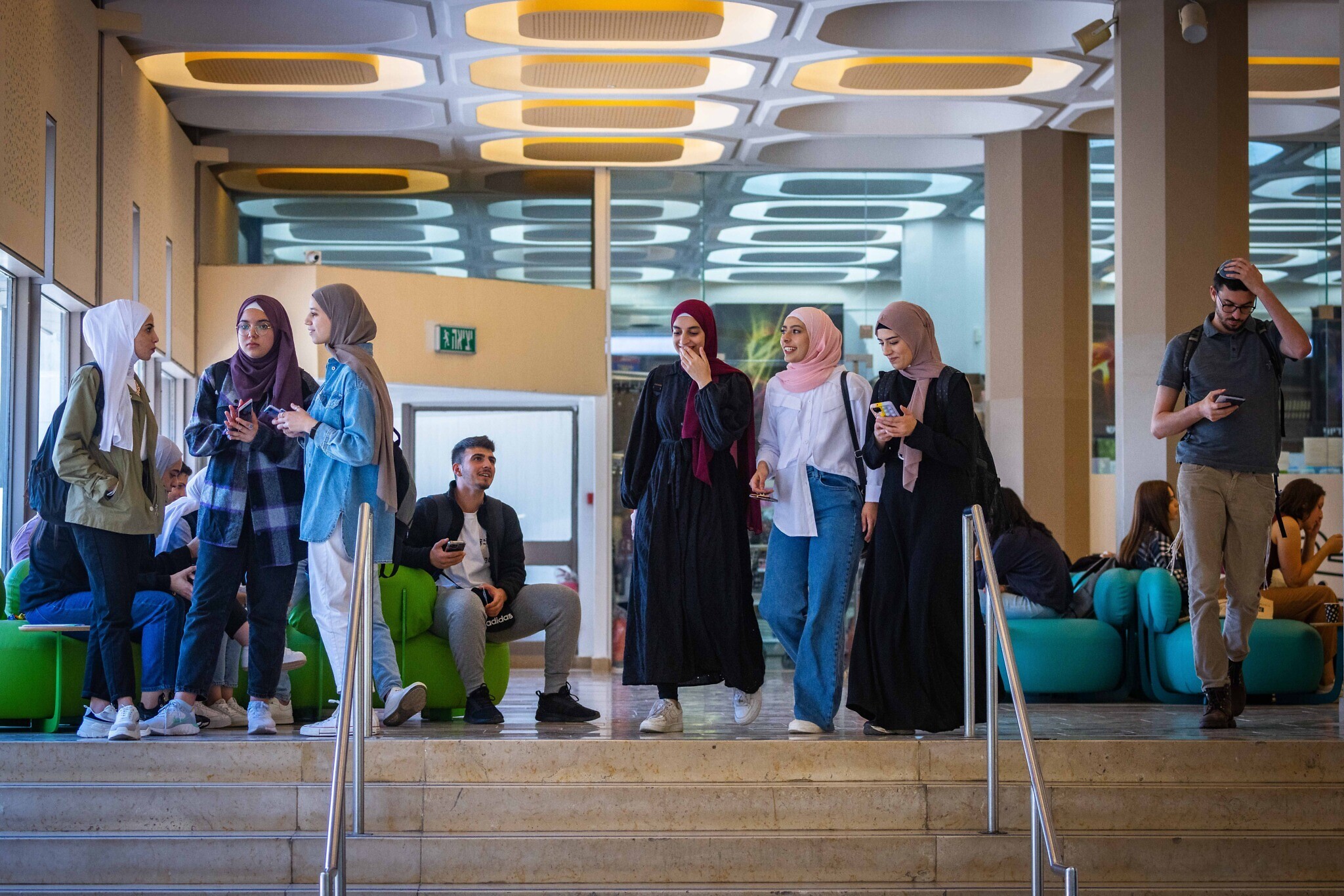 Студенты в кампусе Mount Scopus Еврейского университета в первый день открытия учебного года 23 октября 2022 года. (Olivier Fitoussi/FLASH90)