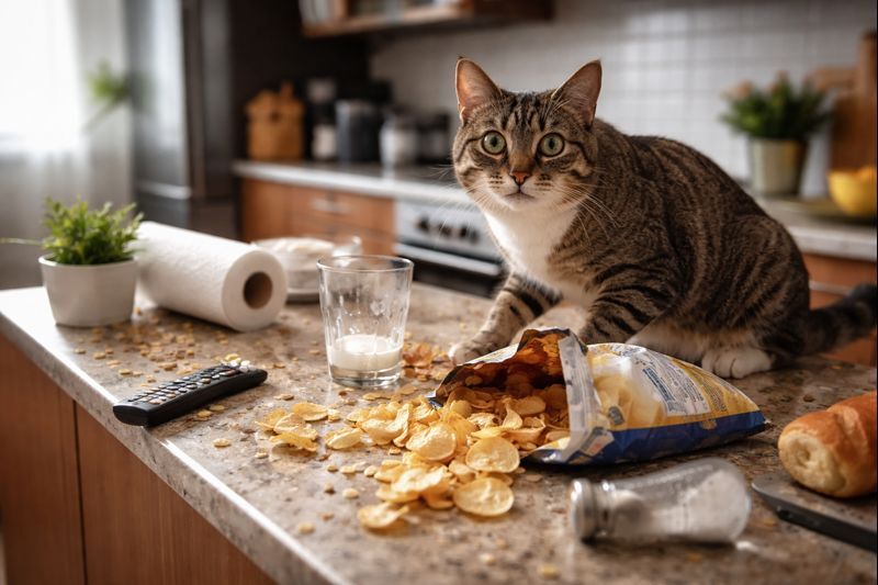 Это результат так называемой малой активности. Питомцы редко устраивают полный хаос. Чаще это серия мелких перемещений: запрыгнуть, спрыгнуть, пройтись, понюхать, зацепить хвостом. Эти действия не выглядят значимыми по отдельности, но вместе создают эффект, будто квартира немного жила своей жизнью.