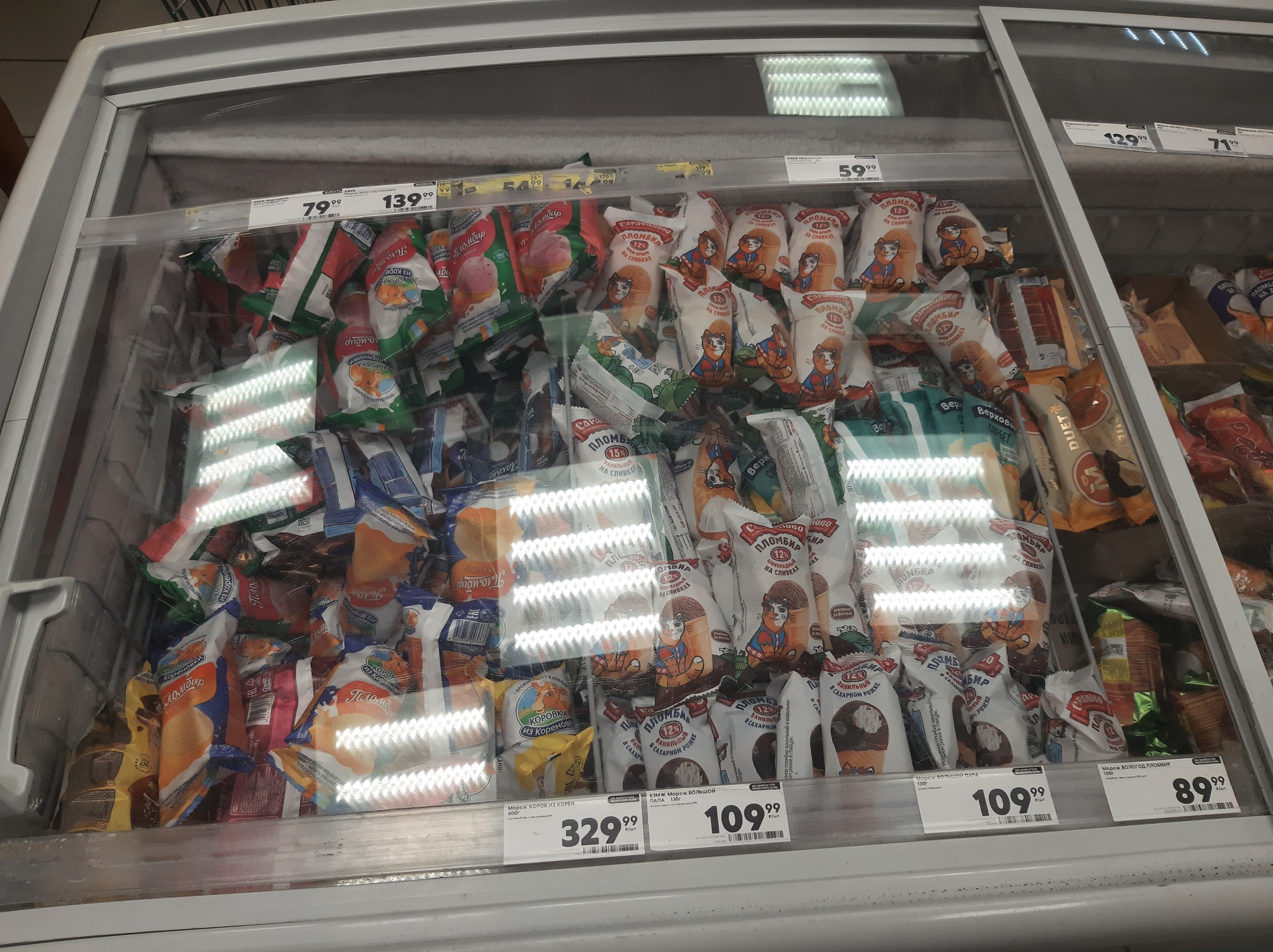 Тут недавно был пост, что в Пятерочке навели порядок с ценами на мороженное. Вчера заходил вечером купить мороженное и был неприятно удивлен, когда на кассе стали пробивать. Коровка из Кореновки пломбир в стаканчике с 'малиной' 129р и Лакомка 109р. Купил. Специально сделал фото витрины. С ценниками просто писец. Ростов-на-Дону, ул.Вятская 63.