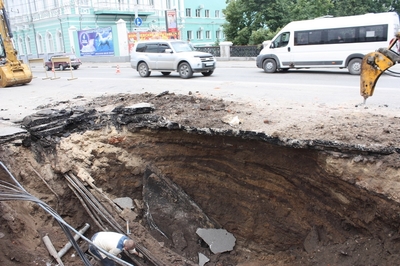 1439 vovchic04 Пятиметровая яма образовалась в Рязани на площади Победы 10 лет назад Теперь в ней можно сделать отличный бассейн [моё] Рязань Дорожные работы Российские дороги