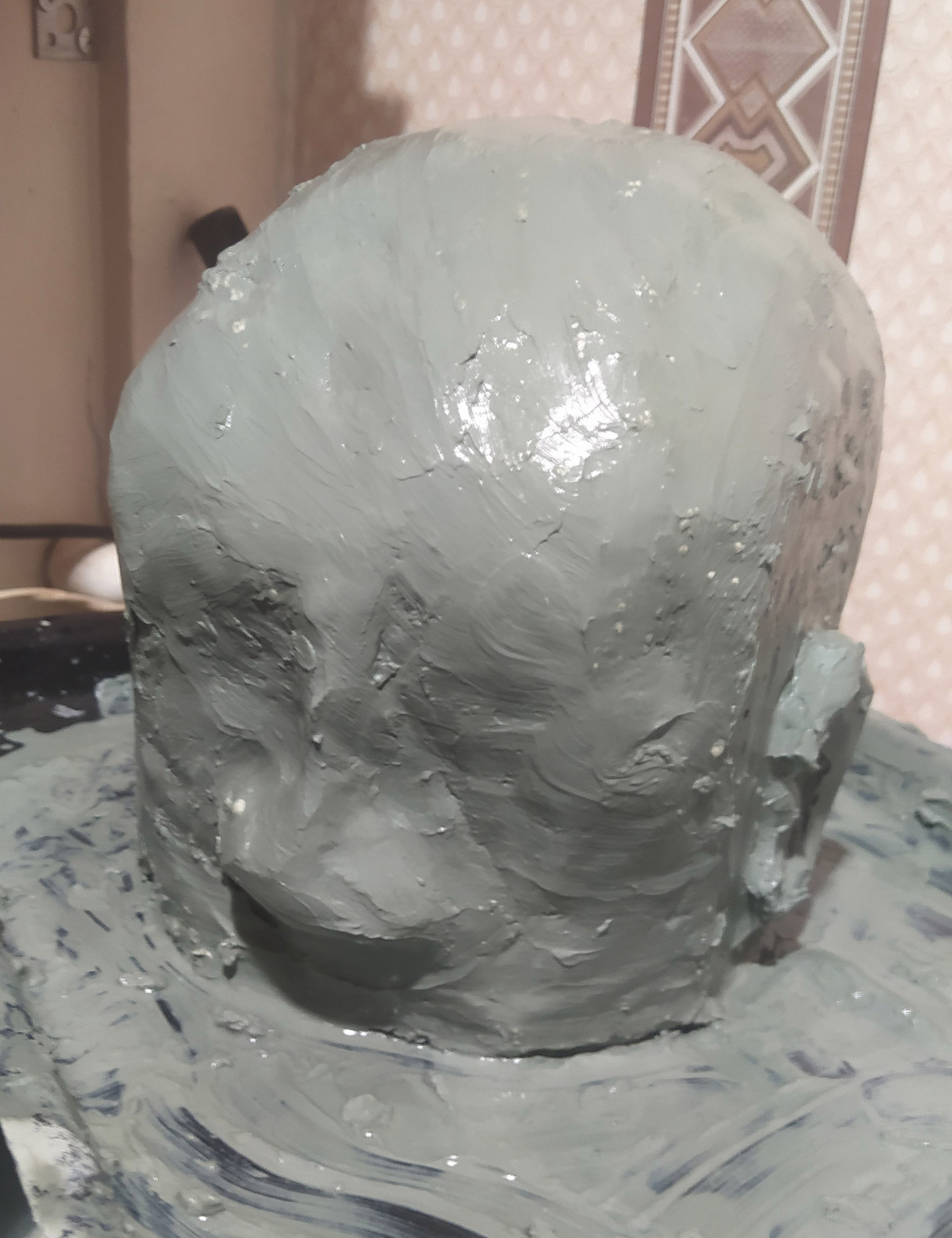 на этот манекен после высыхания с помощью пластилина наложили необходимую форму шлема.Фото пластилинового макета нет(. И сверху Пва и бумага, в слой пол сантиметра.