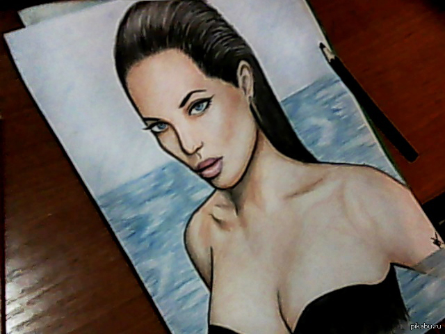 Попытка на скорую руку изобразить Анжелину Джоли. Извиняюсь за фото, сделанное на пробку от шампанского :D Думаю, клубничку ставить не обязательно.