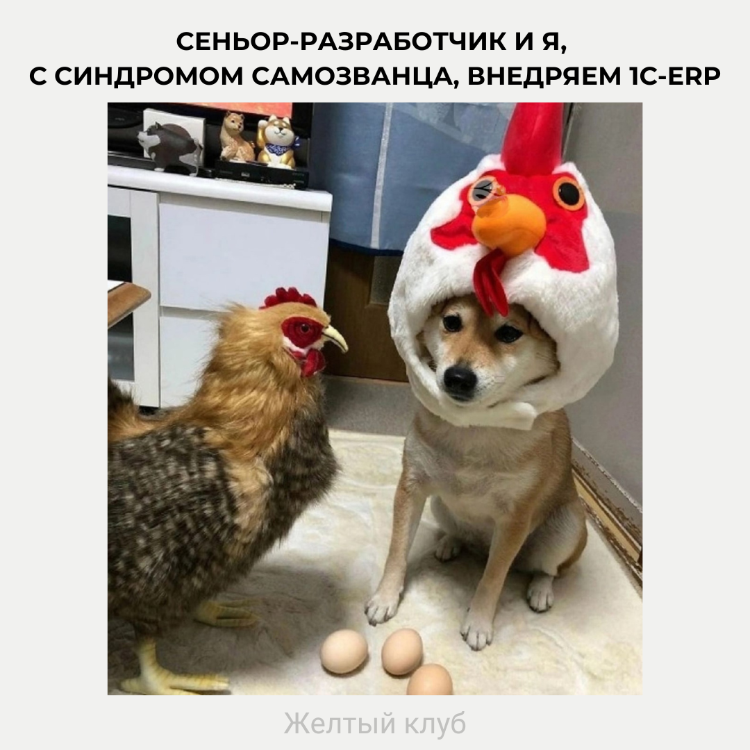 12 YellowClub Пятничный мем 1 год назад 1С Программирование Картинка с текстом Курица Яйца Собака IT юмор 2 1 Ещё 0