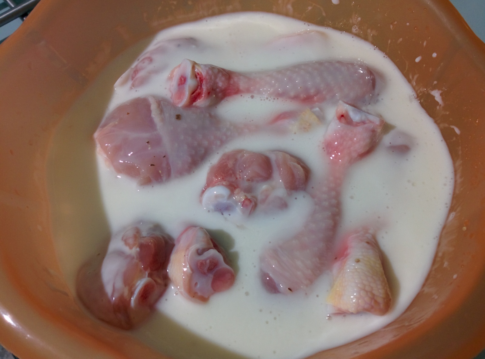 Для начала замаринуем ножки в кефире, предварительно поперчив и посолив. Оставим на 1-2 часа.