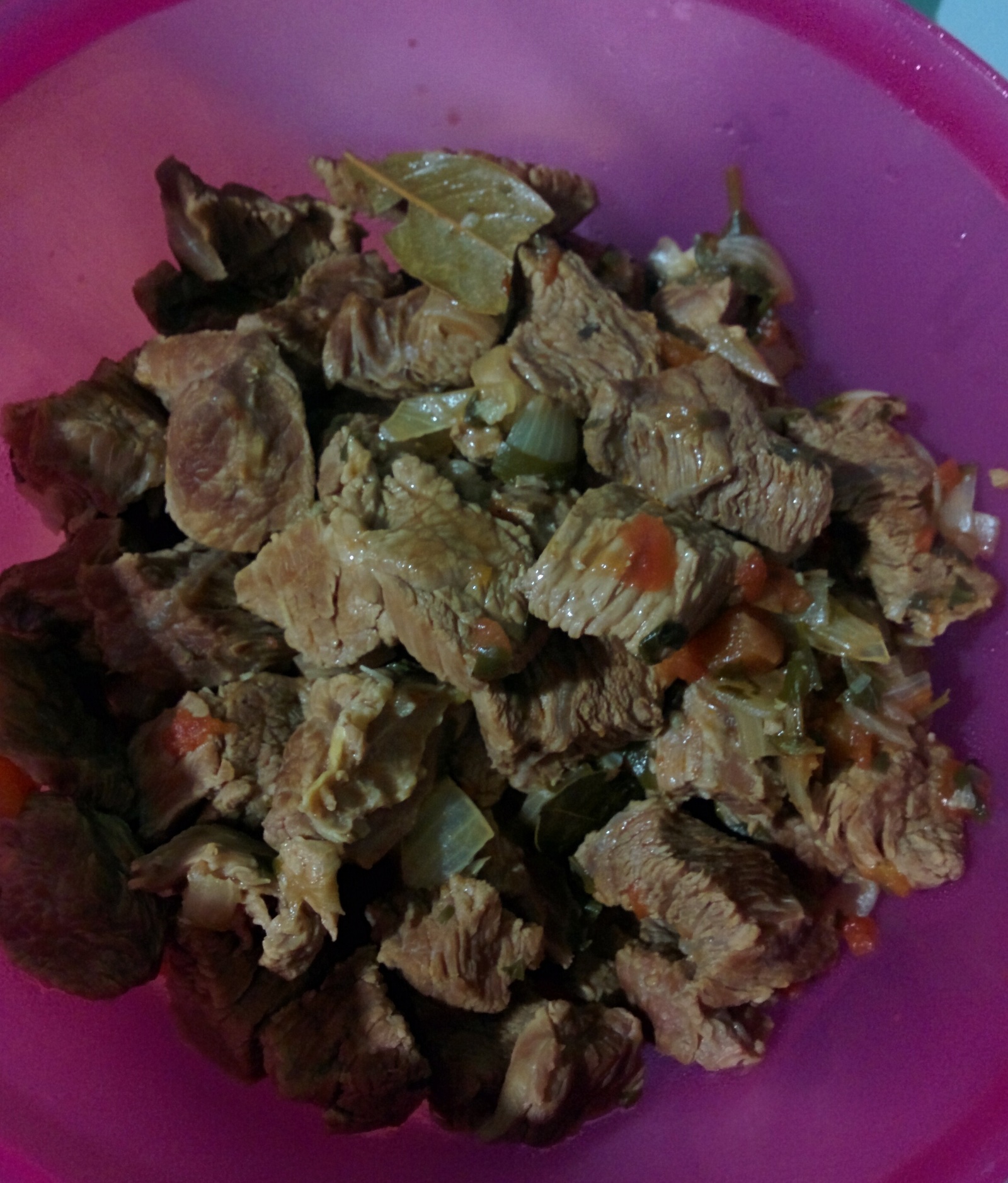 Нарезаем говядину небольшими кусочками. Выкладываем мясо в казан, заливаем бульоном,вином и столько воды, чтобы полностью закрыть мясо. Доводим до кипения и убавляем огонь до слабого. Добавляем мелко нарезанный лук, чеснок, петрушку, 1 столовую ложку эстрагона, перец соль по вкусу и сок половины лимона. Заливаем томаты и закрываем крышкой на 2-3 часа. Мясо должно стать мягким, но не разваливаться.