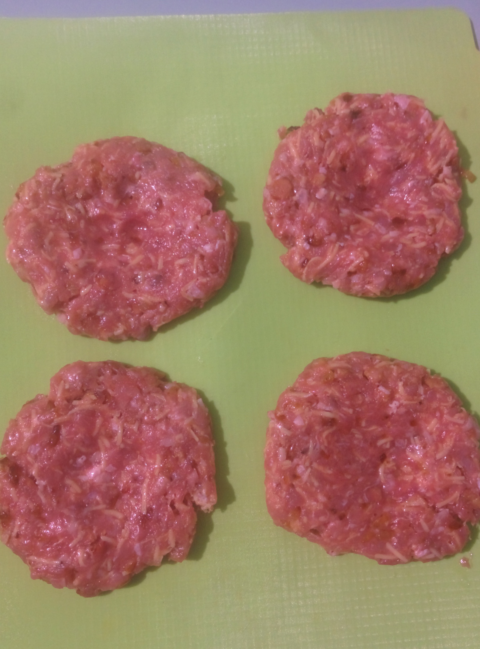 Смешиваем с фаршем. Добавляем соль и перец по вкусу. Помните, что грудинка и так соленовата. На мелкой терке натираем 100 гр. сыра и добавляем в фарш. Лепим котлеты для бургеров чуть больше, чем булочки. Посередине делаем небольшое углубление, чтобы котлеты остались плоскими после жарки.