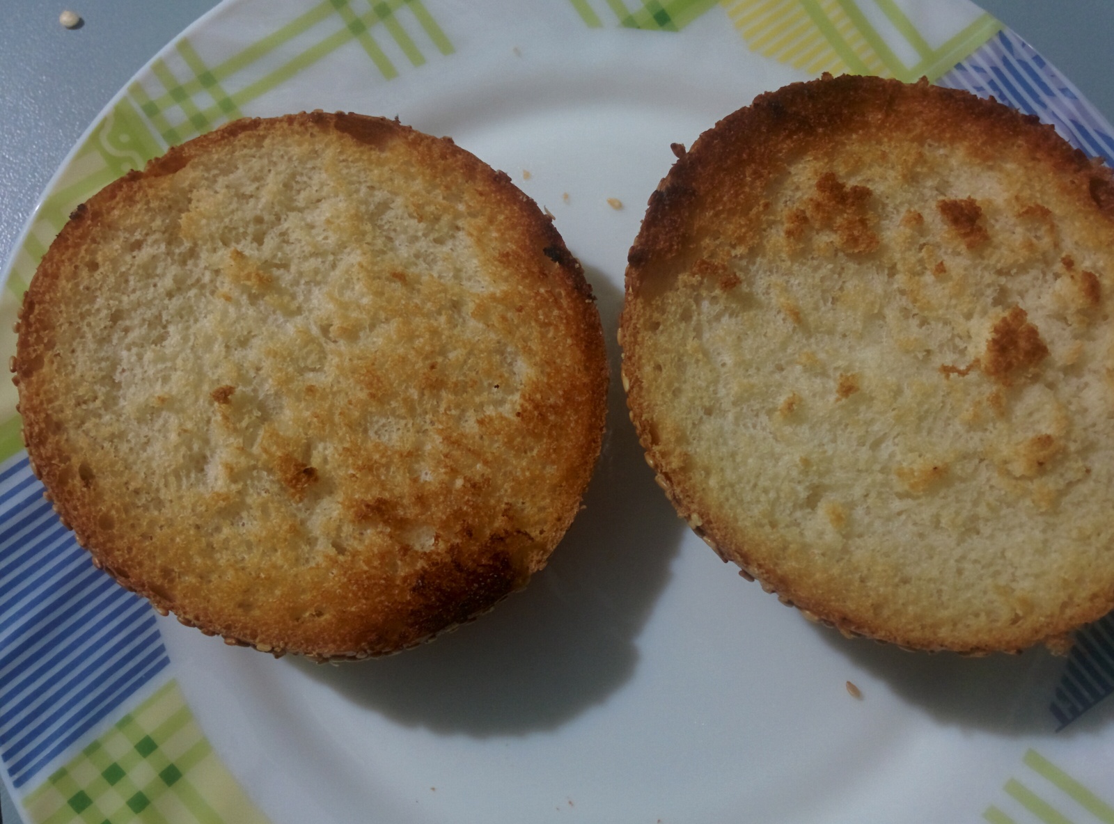 Срезы булочки обжариваем на сухой сковородке около минуты.