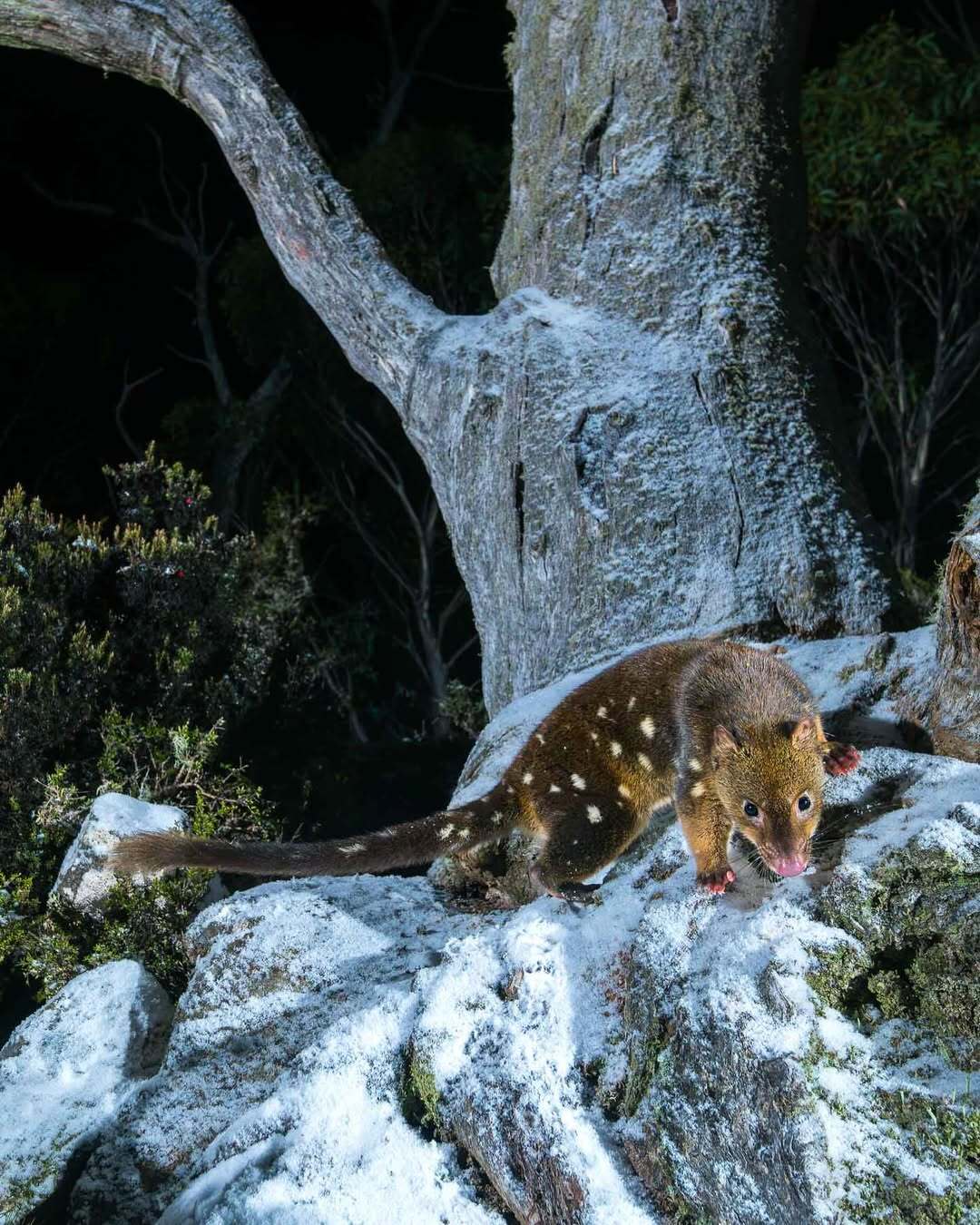 Пятнистохвостая сумчатая куница (Dasyurus maculatus) - второй по величине сумчатый хищник после тасманского дьявола и самый крупный сумчатый хищник материковой Австралии. Длина её тела около 60-75 см, хвоста - 50 см и масса до 7 кг.
