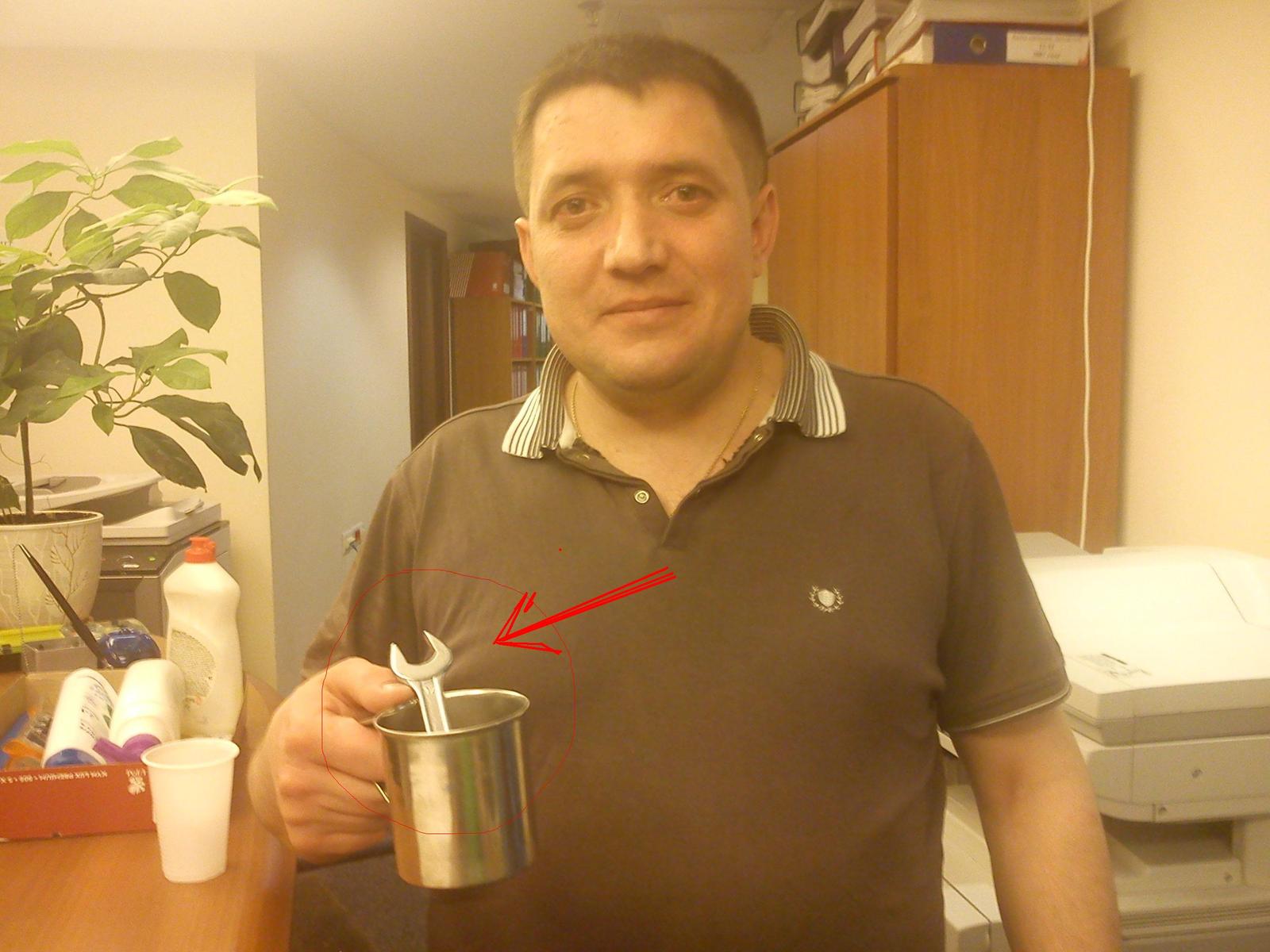 суровые офисные работники, мешают кофе ключом на" 17" друг мой, ставлю тег мое.... да, кофе в пластиковом стаканчике, а в кружке размешиваем спирт с водой