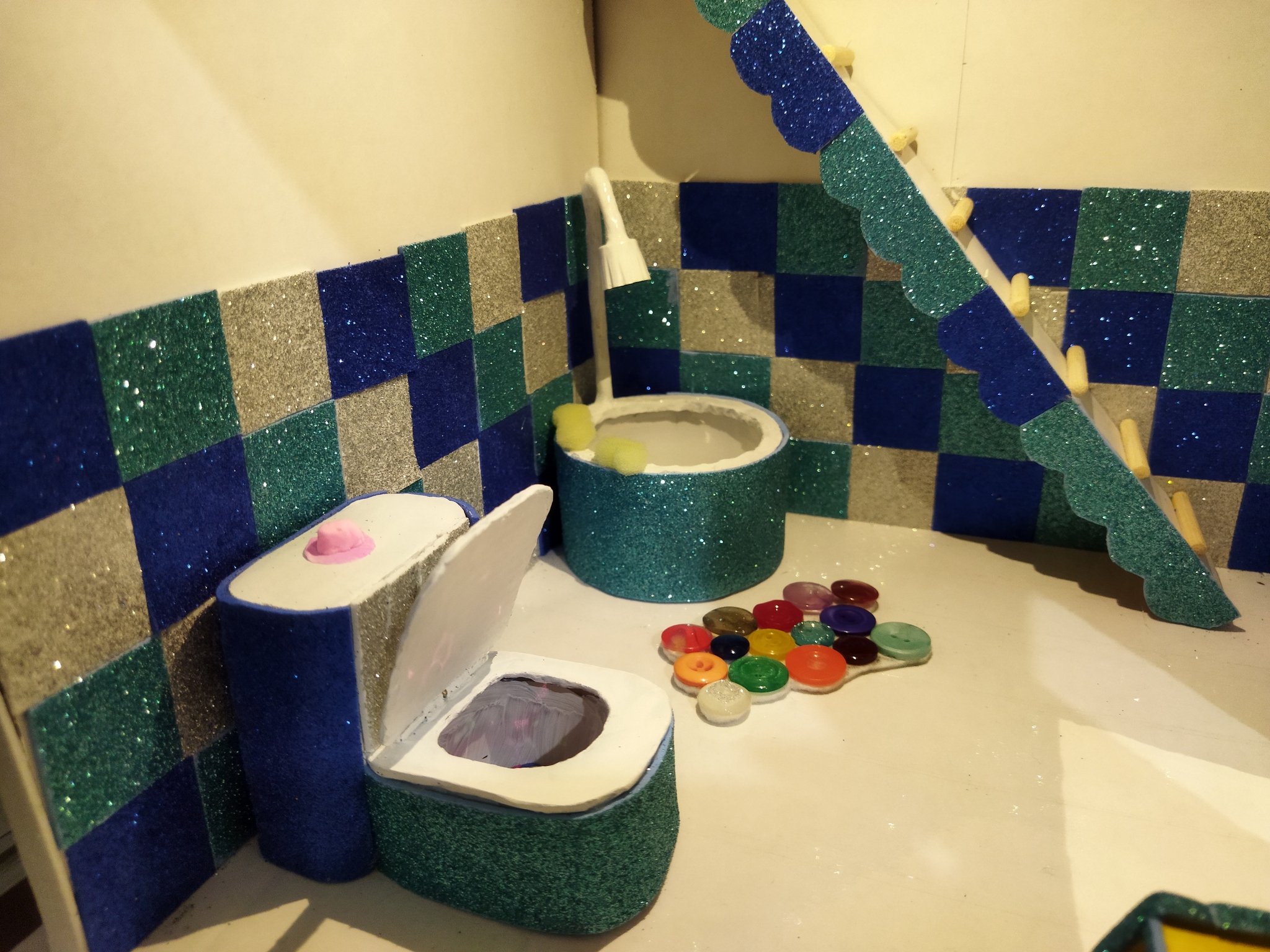 Мой день выглядел забавно: с утра по дороге в садик сбор пожеланий, затем хоз работы по дому ( не больше 2х часов) и часов 8 работы над домиком. Вечером муж просто отнимал нож и карандаш, и прогонял отдыхать.