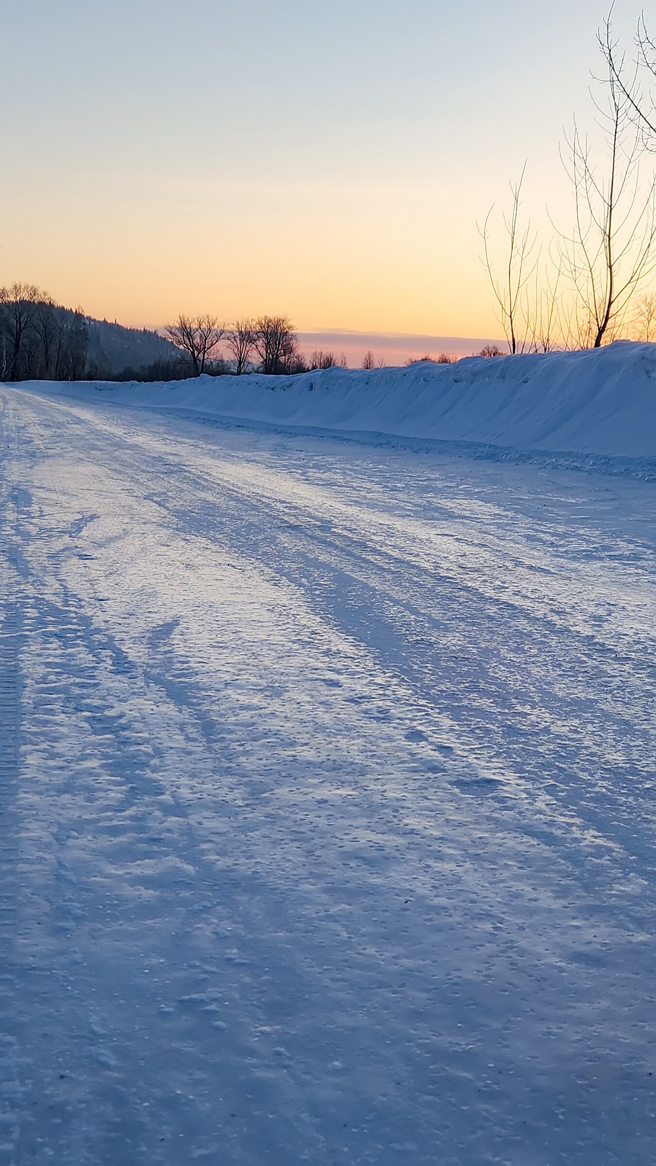 У нас тут странные погоды. Пару дней постояло до плюс десяти и, как положено, давануло морозом все, что красиво растаяло. Обочины и проселки - чистый каток.