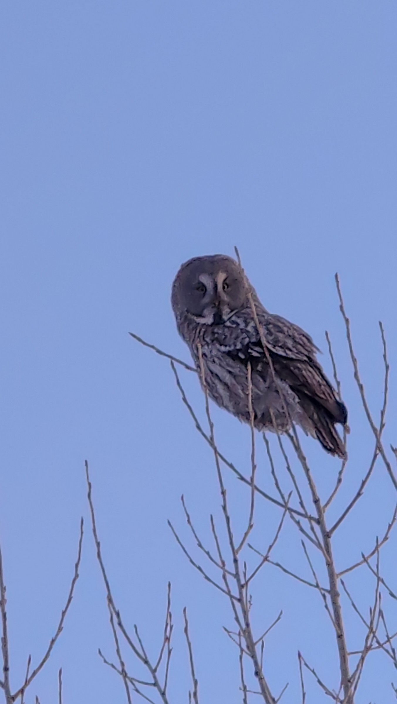 Сова слева на дереве. Реагировала индифферентно. Собсна, когда в прошлый раз я на нее фонариком светил, она тоже игнорила )