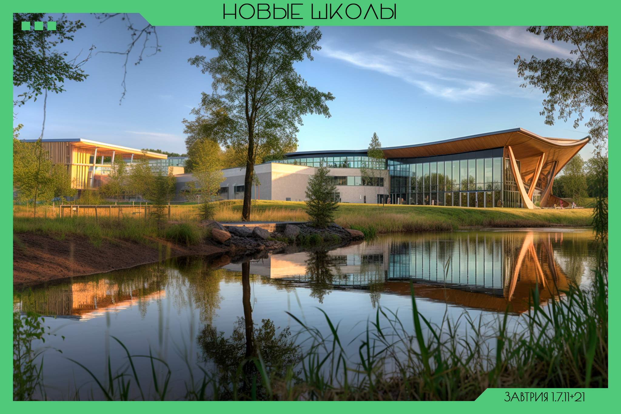 В июне началась первая стадия строительства. В мегаполисах новые школы возводят за городом, связывая со скоростной транспортной системой, в деревнях добавляют к ним солнечные и ветряные электростанции. Десять экспериментальных школ-интернатов строят вне населённых пунктов в окрестностях природных парков. К следующему учебному году будут готовы пятьсот новых школ по всей стране. Проекты дополнятся пожеланиями учеников и учителей, после чего все наши школы постепенно переведут в новые учебные здания.