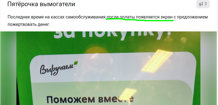 Мало того, что Пятерочка играет в благотворительность за счёт покупателей, так любой шутник, следующий за покупателем может ткнуть в "500₽".