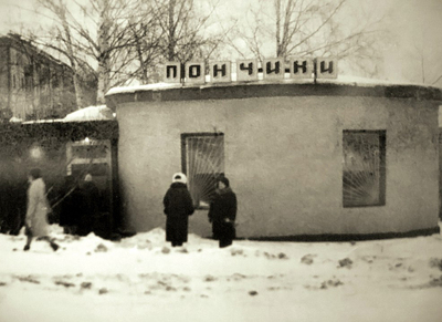 В Мытищах(в районе Тайнинка) были "Пончики",народ называл его "шайба" за круглую форму здания, там делали самые вкусные пончики на свете. Я очень любил заходить туда с мамой, когда мы возвращались домой на электричке из Москвы. К сожалению, в начале 90-х его снесли, но хотя бы фото сохранилось.