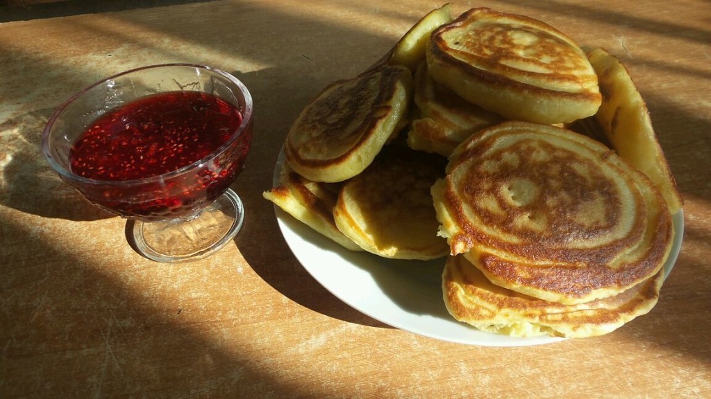 Тесто начнет пузиться. Сковороду нагреваем,размазываем по ней несколько капель растительного масла и выкладываем оладьи. Огонь до минимума и крышкой накройте. Минуты по 2 с каждой стороны вполне хватит. Оладьи вкуснючие,пышные,мягкие. У меня первая партия улетела за 5 минут. Вторую немного не доели,я их сложила в пакет и отправила в холодильник. На следующий день 2 минуты в микроволновке и оладьи как со сковороды. Ангела вам за трапезой