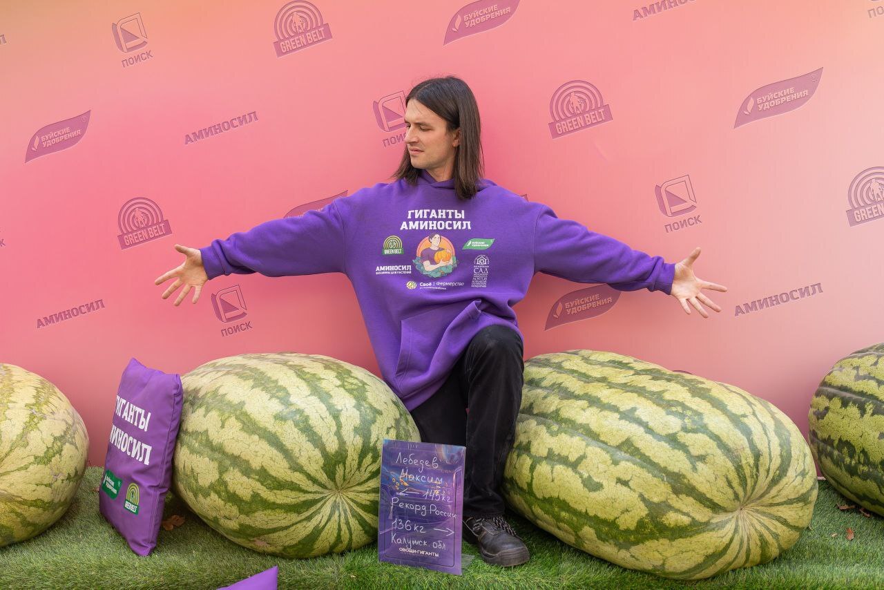 Это арбуз, который весил 109,7 кг, и вырастил его Энди Вульф в 2020 году.
