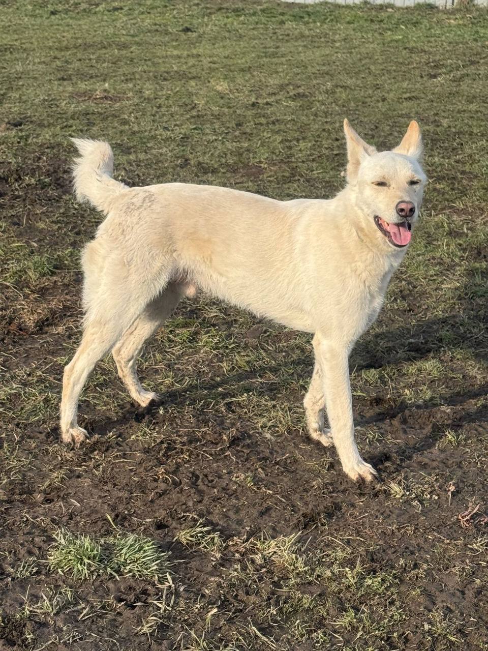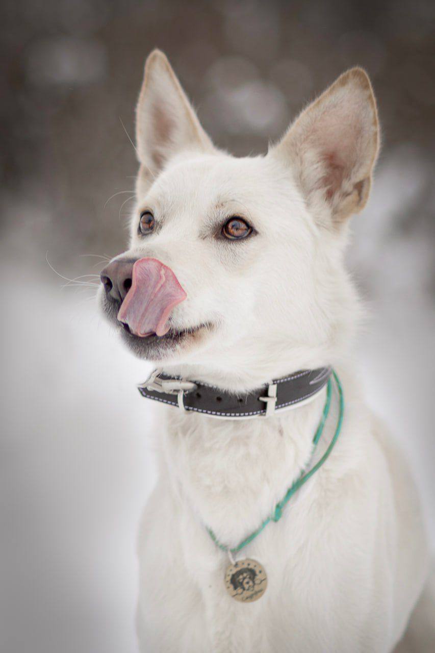 Представьте себе белого красивого пса как из лучших фильмов и книг, с глазами, которые сияют как утреннее солнце! Этот двухлетний красавец мастерски слушается людей и может сделать ваши будни настоящим счастьем