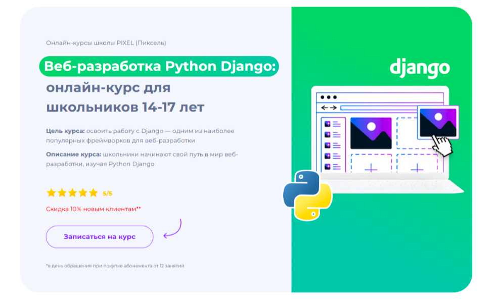Онлайн-курс для школьников 14–17 лет «Веб-разработка Python Django»