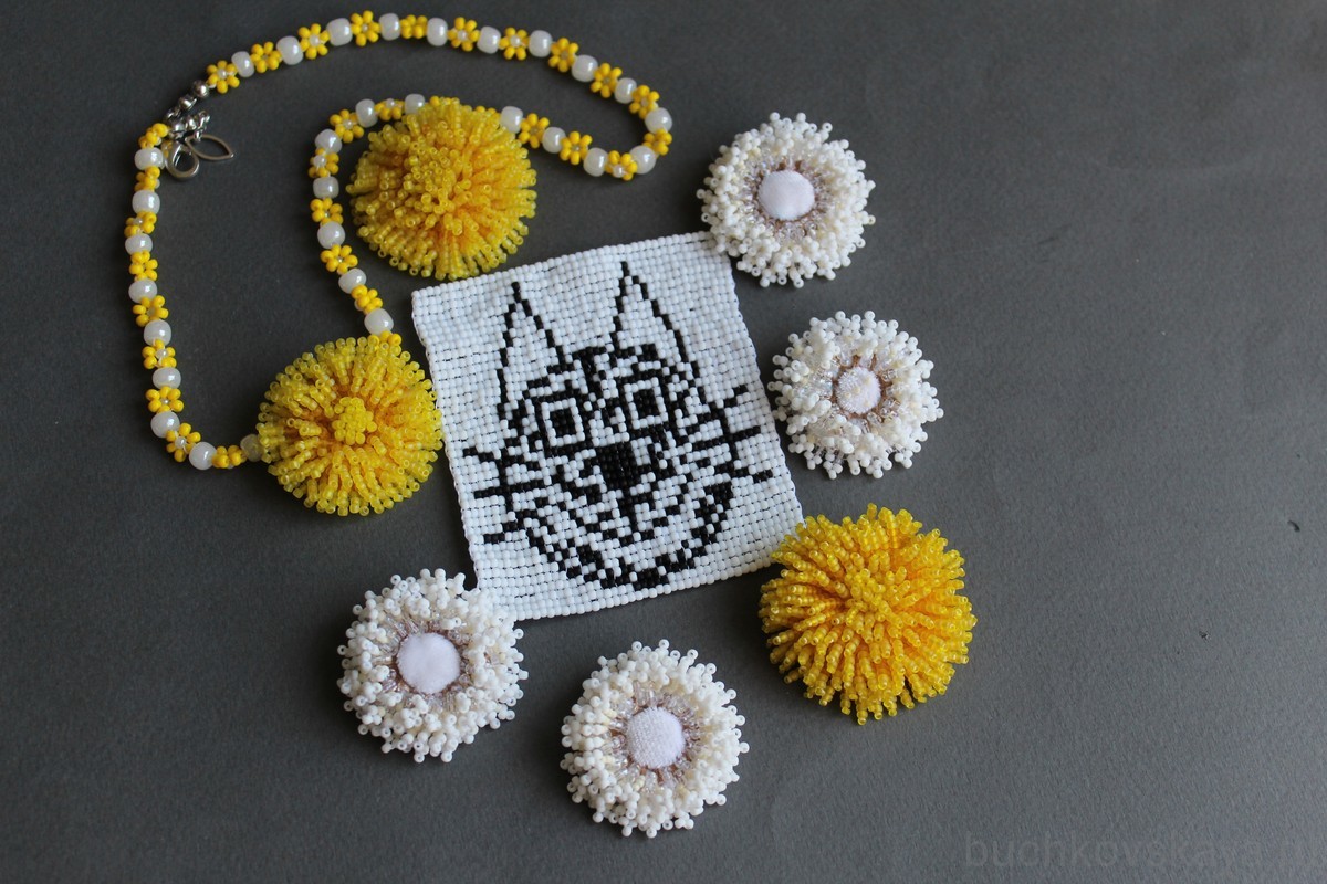 Ну и напоследок - QR-кот в одуванчиках. Это брошки)