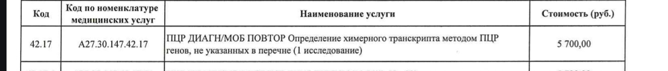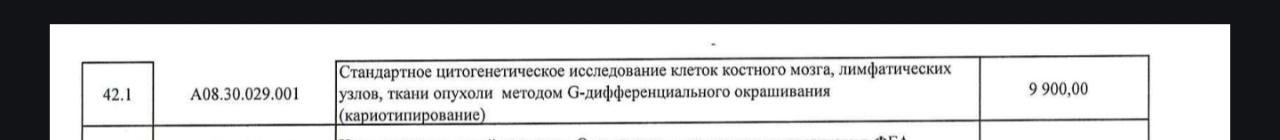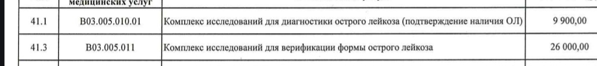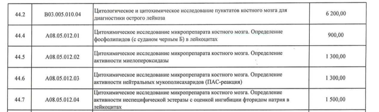 Ниже я приведу сканы из официального прейскуранта ФГБУ НМИЦ ДГОИ им.Дмитрия Рогачева на 2025 год.