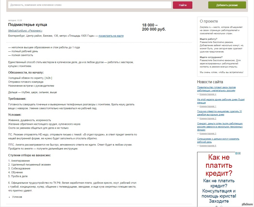WhtePlane 10 лет назад Работа для купцов с понятиями Особенно условия труда порадовали. [моё] Вакансии Мастер Удобное кресло и тумба