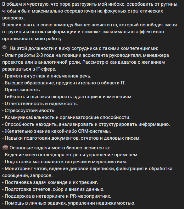 Жена нашла на просторах HH.RU работу мечты. Жалко рассказывать, могут недремлющие конкуренты вакансию мечты перехватить, но ладно, не только лишь все смогут потянуть столь суровые требования.
