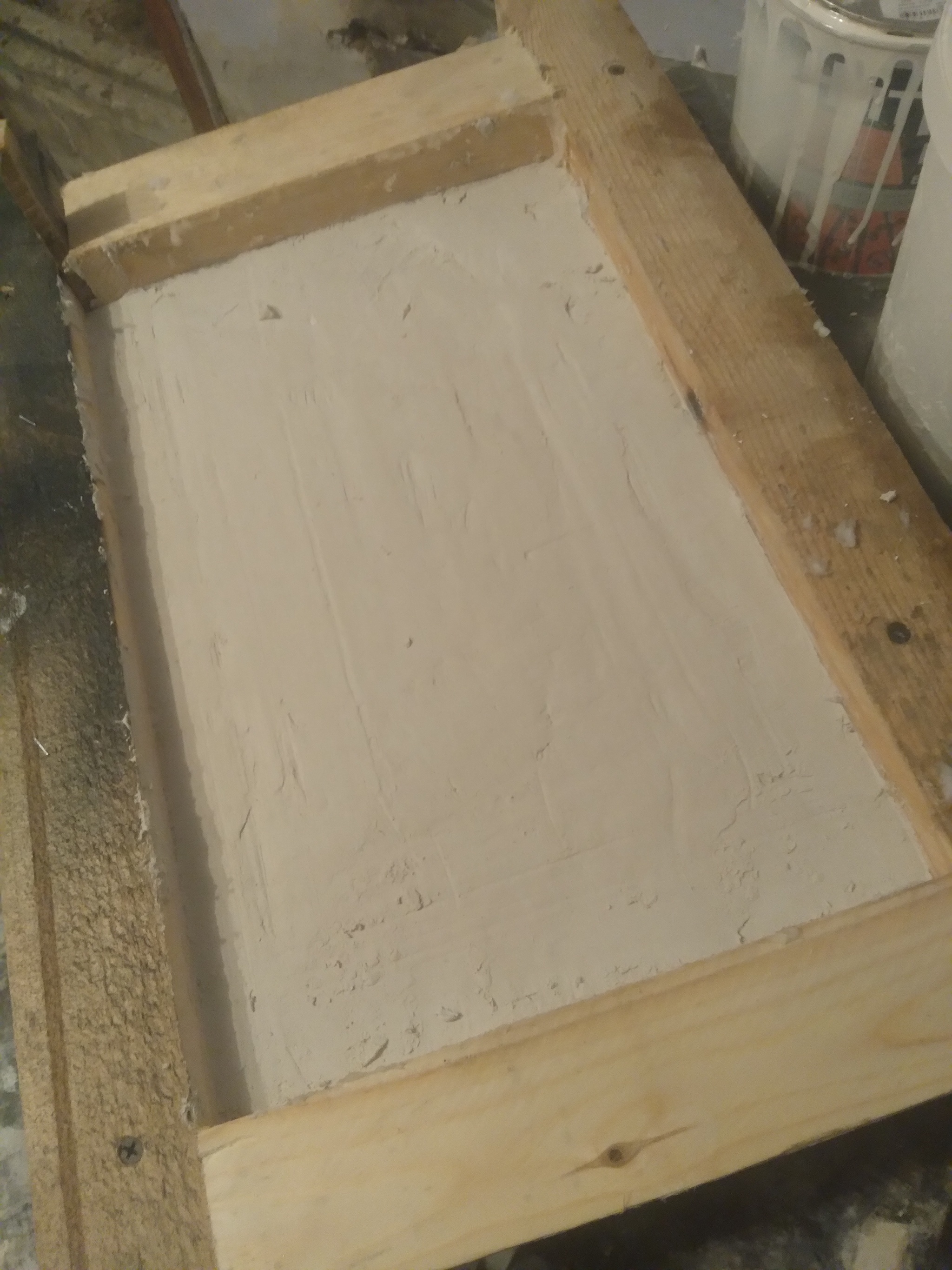 Затем развести гипс в моём случае это гипс марки г16 желательно развести как можно гуше и залить нашу опалубку