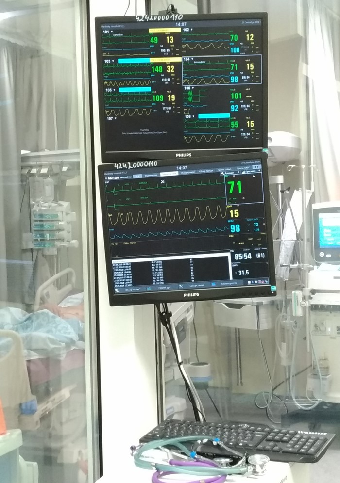 Здесь лежат больные, которые нуждаются в постоянном контроле жизненных показателей и активном лечении. Давление, пульс, сатурация(насыщение крови кислородом) и др. выводятся на монитор. Давление измеряется каждый час(если больной стабилен) в другой ситуации каждые 1-10 минут. Анализы берут каждый день, либо чаще.