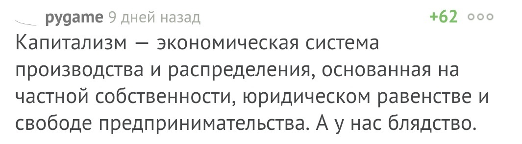 у кремлеботов ща новый "финт ушами", в любом блядстве чинуш и депутатов винят капитализм и, что примечательно, эта тема реально срабатывает на малограмотное население. правда вот когда напоминаешь про кубу, венесуэллу и северную корею, где с капитализмом успешно борются, они сразу сливаются к хуям