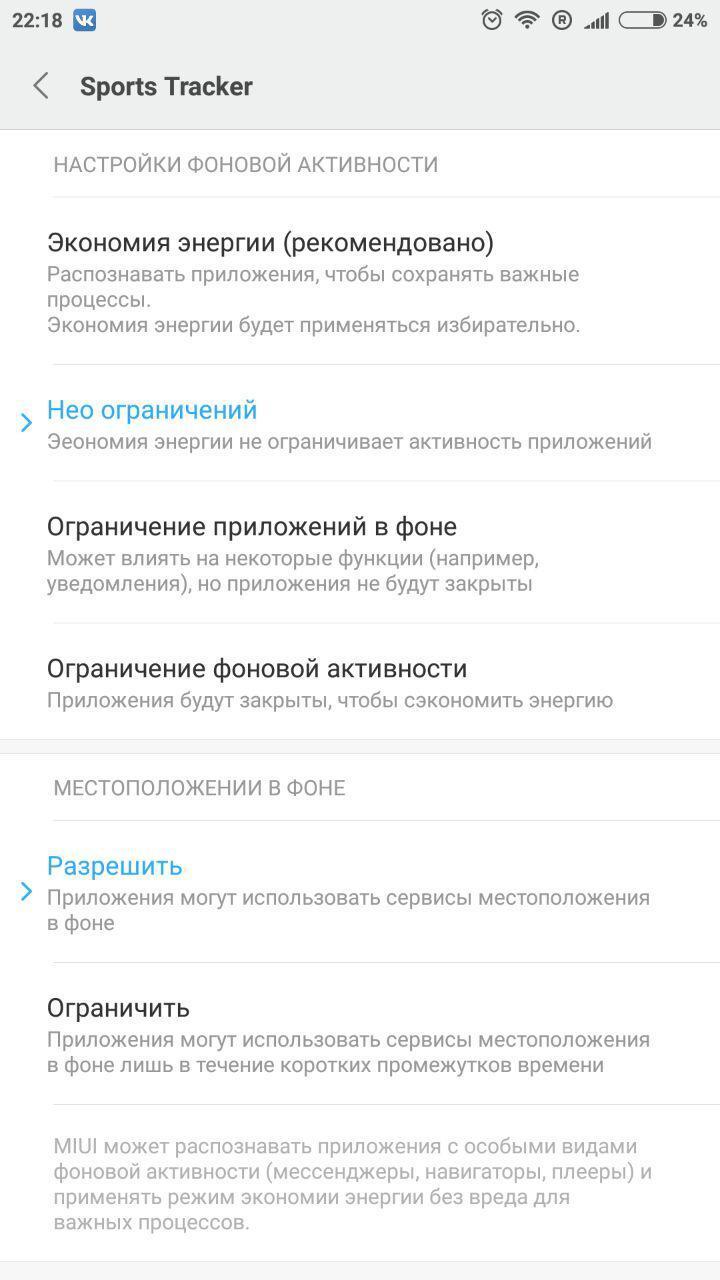 Ставлю приложение в автозагрузку + в расходе заряда ставлю нет ограничений
