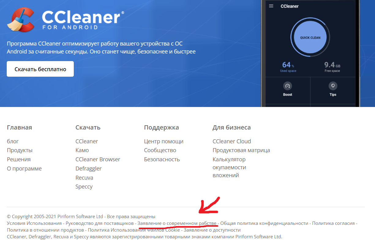 1905 GoGoBoy Рабство?1 4 года назад Зашёл сегодня на офциальный сайт CCleaner, и в самом внизу увидел это.Что бы это значило? [моё] Рабство Ccleaner Сайт 22 13 5 3 2 Ещё 0