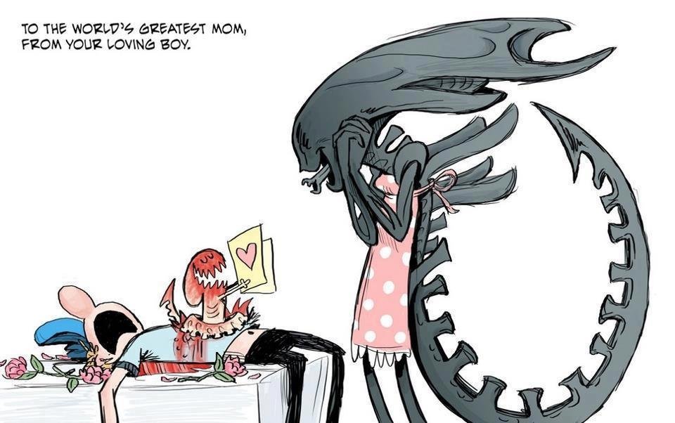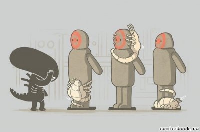 Зашел дабы проверить на месте ли эта гифка. P.S. Когда снимали эту сцену, актеры не знали что чужой выпрыгнет, так что их реакция ненаигранная