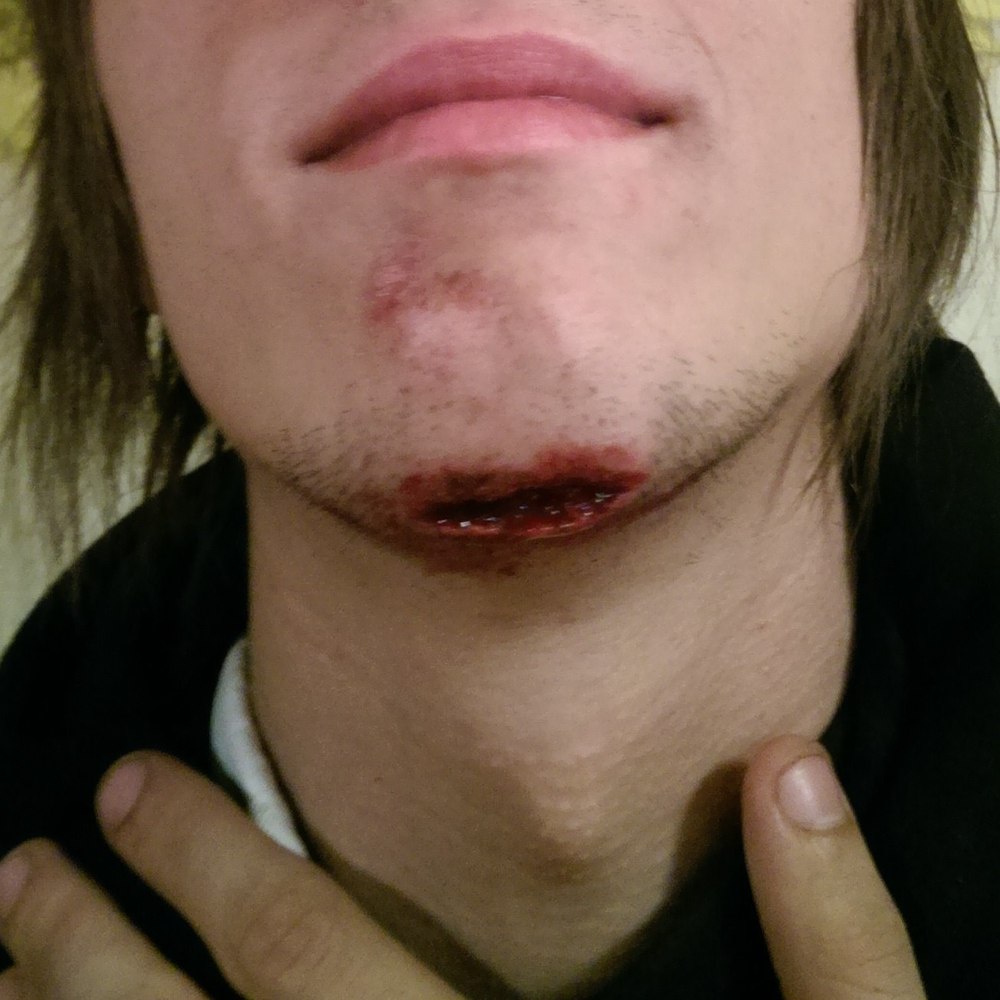 мы вискарём промыли и строительным пластырем затянули, сейчас почти не видно) только когда не бреешься. Это было 2 года назад)