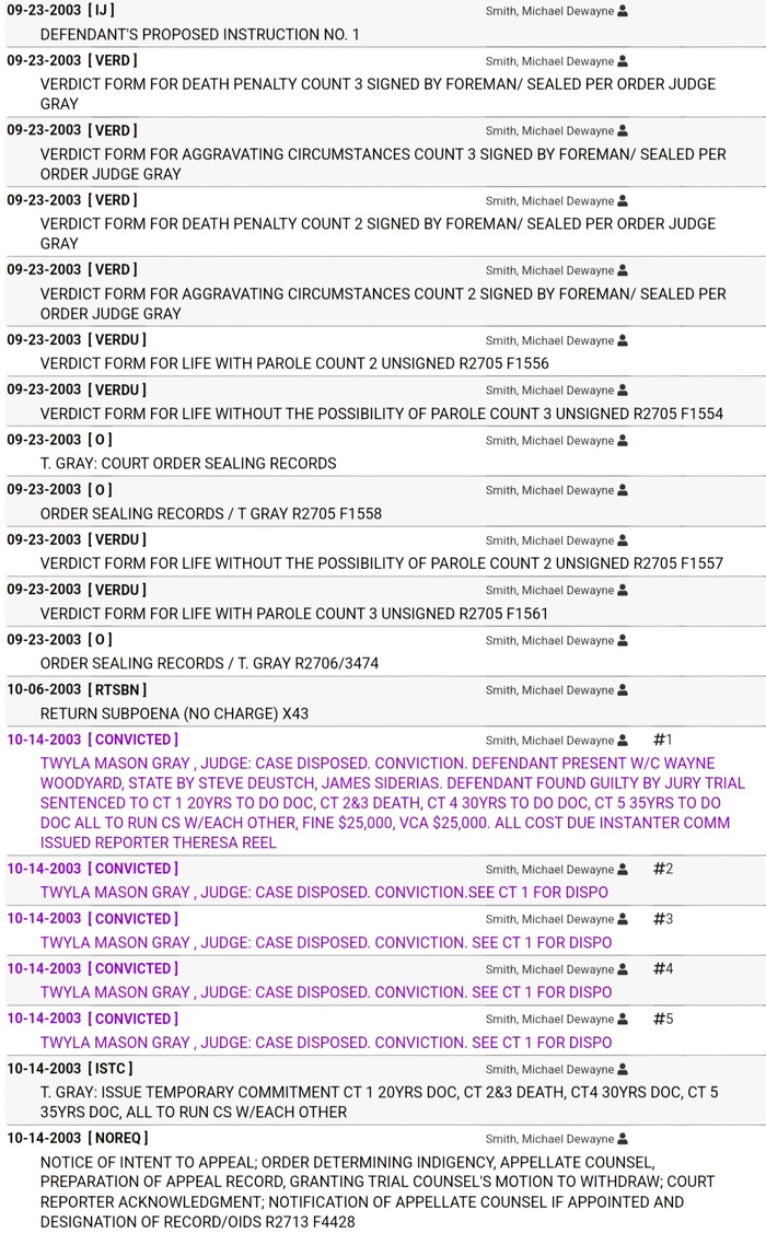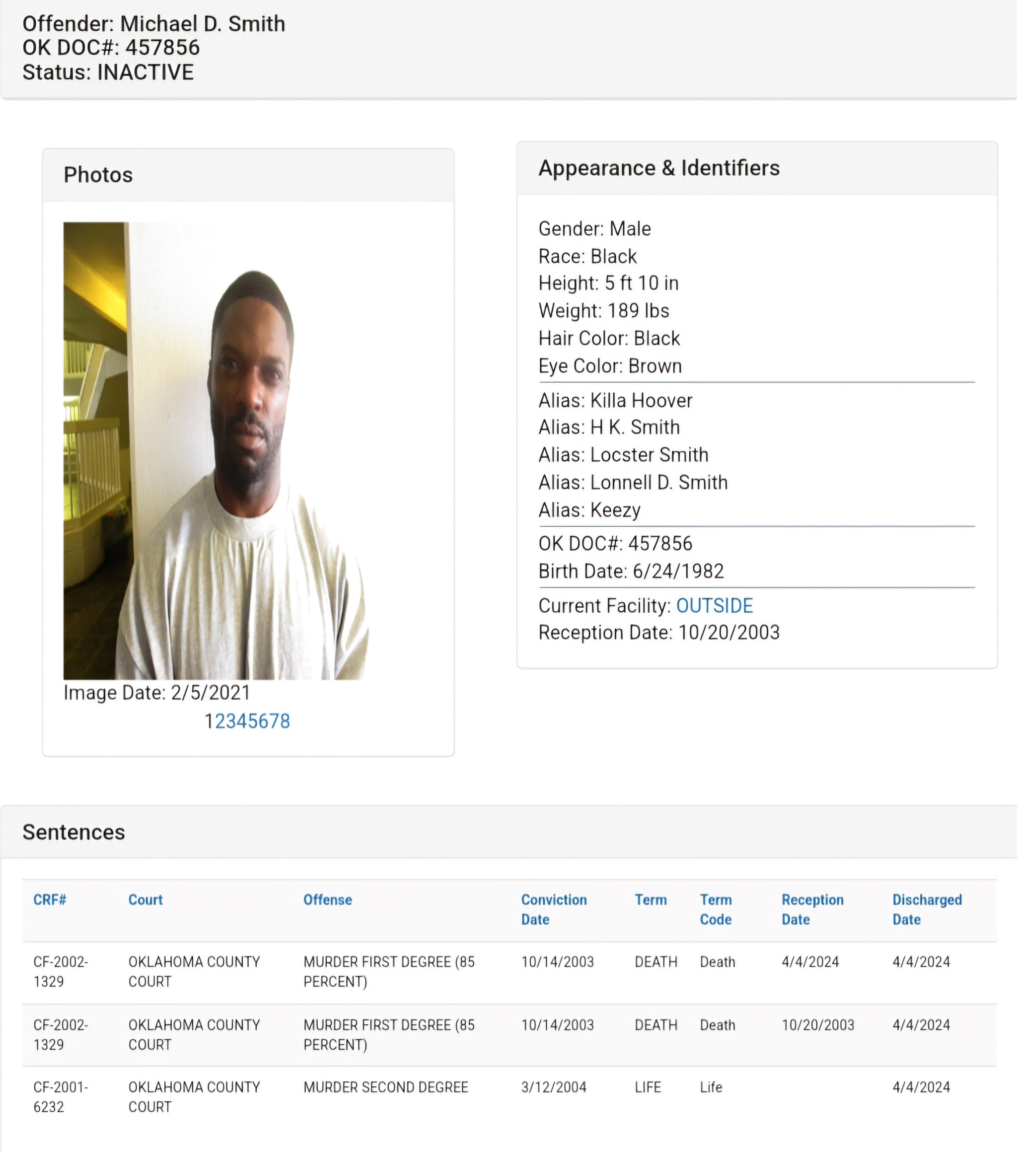 По какой-то причине в онлайн-досье не указаны остальные приговоры Смита на 85 лет тюремного заключения.