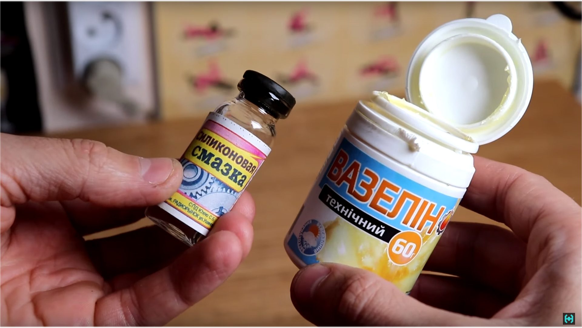 Для обеспечения хорошего оптического контакта, между ФЭУ и сцинтиллятором находится специальная жидкость. Какая именно? Силиконовая смазка, самая густая которую получилось найти. Вы можете спросить, почему я не стал использовать технический вазелин который рекомендовал продавец кристалла? Всё просто, он не подходит в связи с поглощением ультрафиолета, он так же будет поглощать свет сцинтиллятора, и станет не оптической смазкой, а преградой, ухудшающей выходные параметры. Аптечный очищенный вазелин имеет ту же проблему.