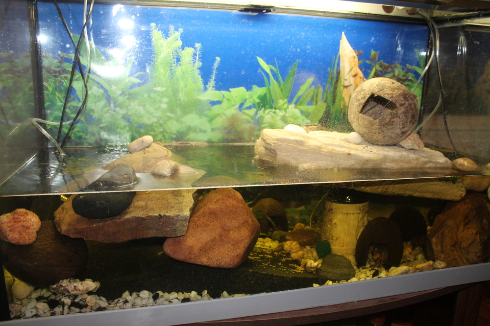 Еще изменений, я поднял уровень воды, поместив один их плоских камней на пивную кружку, новшество всем понравилось. Мох к сожалению не прижился, его растаскивали, пришлось вытащить весь. Жизнь у них идет своим ходом.