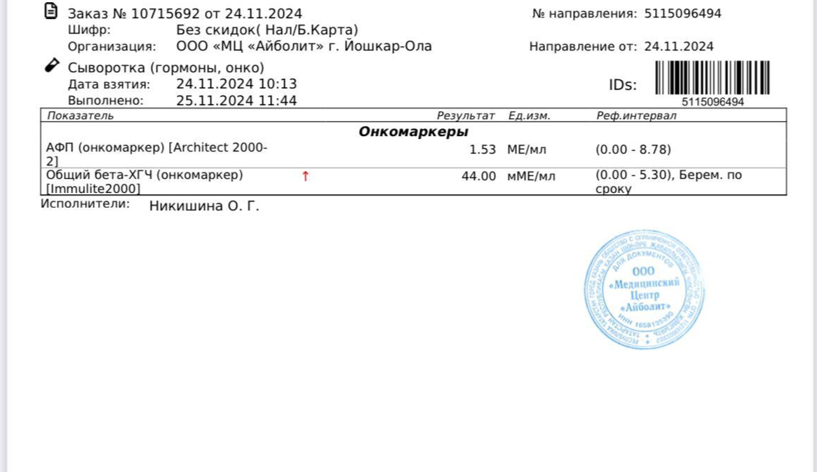 Меня бросает в пот, в горячий, холодный, я бледнею, краснею, немею, какая нах опухоль, мне несколько врачей кисту ставили. Меньше разговоров: дает мне направление на ХГЧ и АФП (онкомаркеры) и УЗИ. УЗИ я прошел в тот же день, орхоэпидидимит, водянка, все тоже самое. Маркеры побежал сдавать с утра натощак в воскресенье, сдал и пошел домой, с уверенностью в том, что это все на фоне воспаления, ожидание не было томительным, результаты пришли уже в понедельник. Открываю результат, АФП – норма, бета-ХГЧ – 44! С этого момента моя беззаботная жизнь резко изменилась, разделившись на ДО и ПОСЛЕ.
