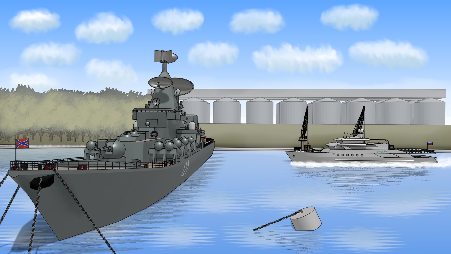Ракетный крейсер "Москва". Бывший флагман Черноморского флота. Cartoon art style