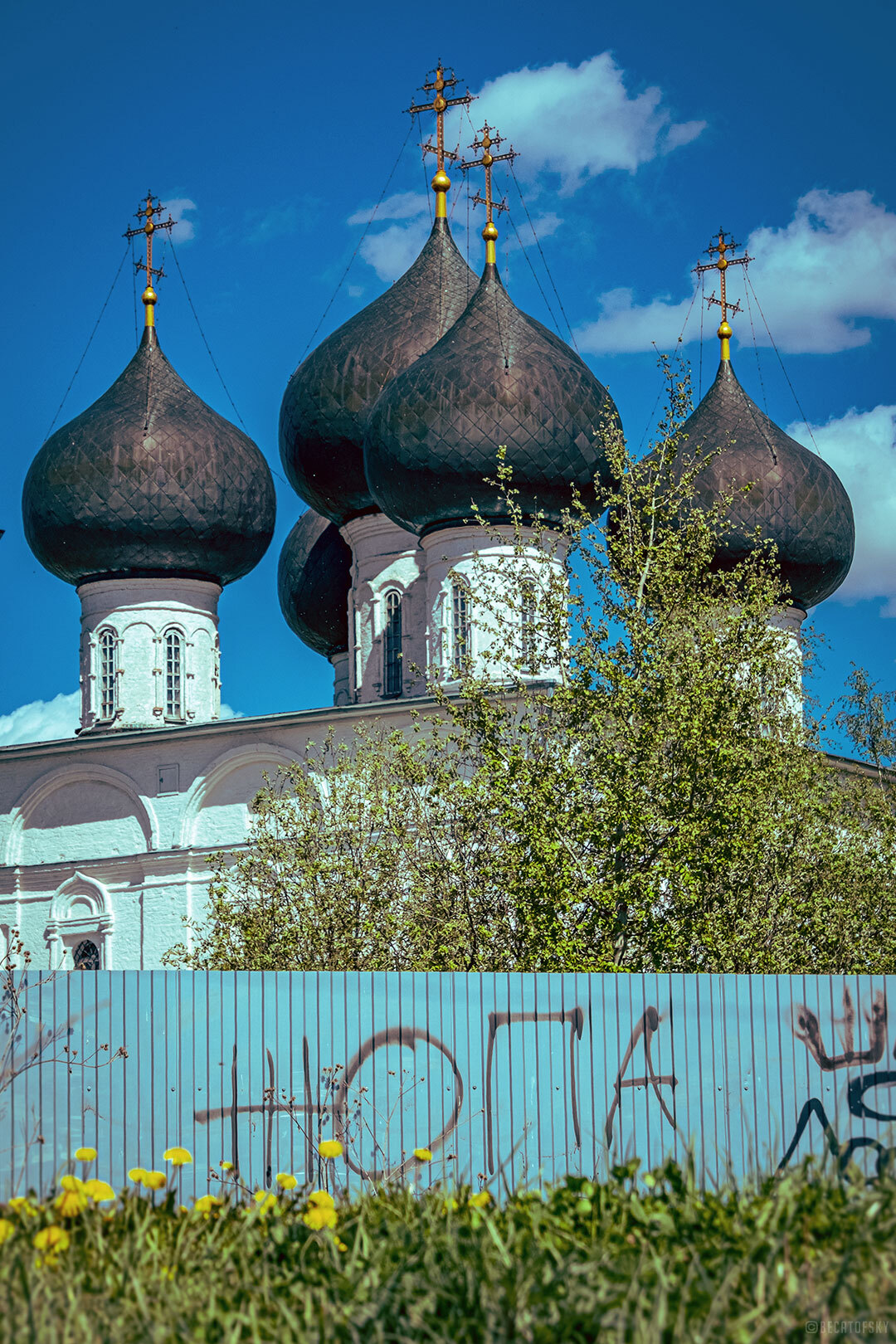 Храм Святителя Николая во Владычной Слободе. Набережная реки Вологды. И храм и забор видны с реки, противоположного берега и сотням людей ежедневно проходящим мимо