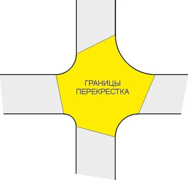 Вот только "стоп-линия" (разметка 1.12) не обозначает границы перекрёстка, а в нашем случае нанесена метра за 3 до перекрёстка. Потому как "Перекресток" - место пересечения, примыкания или разветвления дорог на одном уровне, ограниченное воображаемыми линиями, соединяющими соответственно противоположные, наиболее удаленные от центра перекрестка начала закруглений проезжих частей. (п.1.2 ПДД).